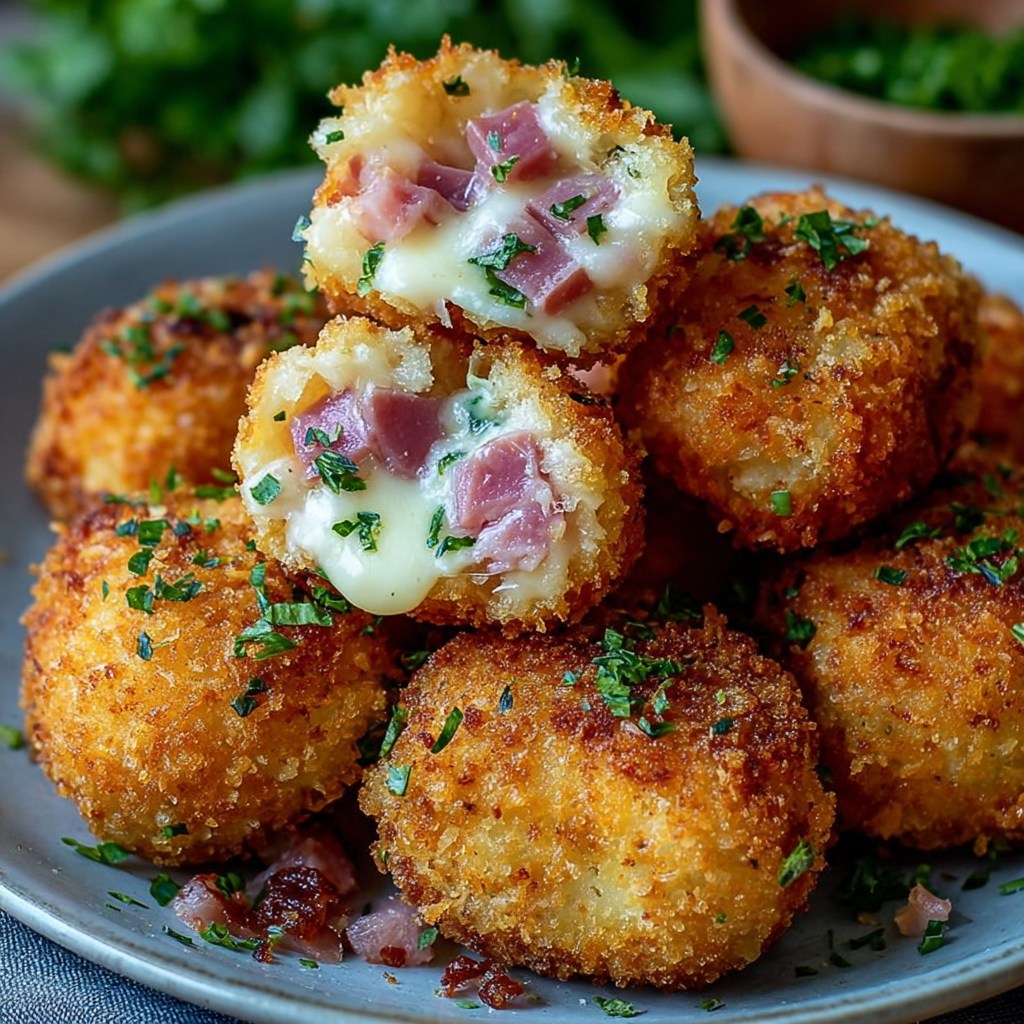 Krokiety z szynką i serem emmentaler to pyszny i chrupiący przysmak, idealny na przystawkę, bufet lub lekki posiłek. To tradycyjne danie zachwyca złocistą skórką i miękkim, ciągnącym się wnętrzem. Połączenie szynki i sera emmentaler tworzy łagodny i cierpki smak, który przypadnie do gustu zarówno dzieciom, jak i dorosłym. Krokiety można podawać same, z zieloną sałatą, grillowanymi warzywami lub domowym sosem, takim jak majonez, sos jogurtowy lub lekko pikantny sos pomidorowy.