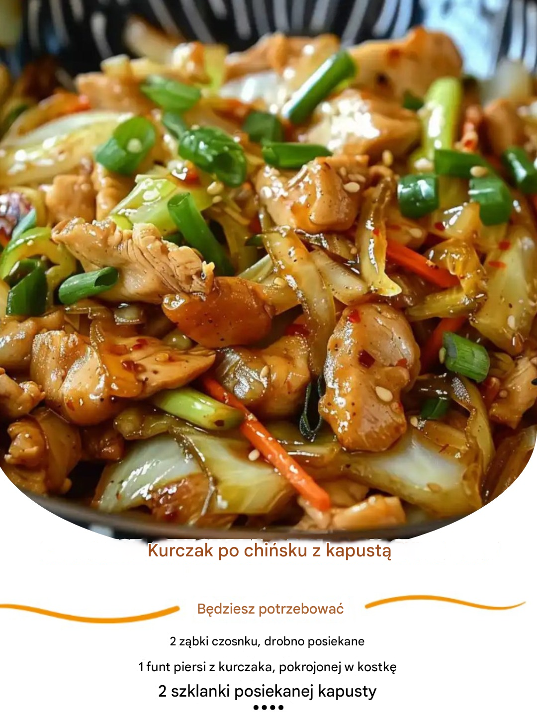 Ten chiński kurczak z kapusty na stir-fry udowadnia, że czasem najlepsze dania pochodzą z lodówki i spiżarni — bez wymyślnych składników. Dzięki delikatnemu kurczakowi, chrupiącej mieszance warzywnej i intensywnemu sosowi inspirowanym Azją przynosi bogaty smak i poważny komfort prosto na Twój stół — i duszę.