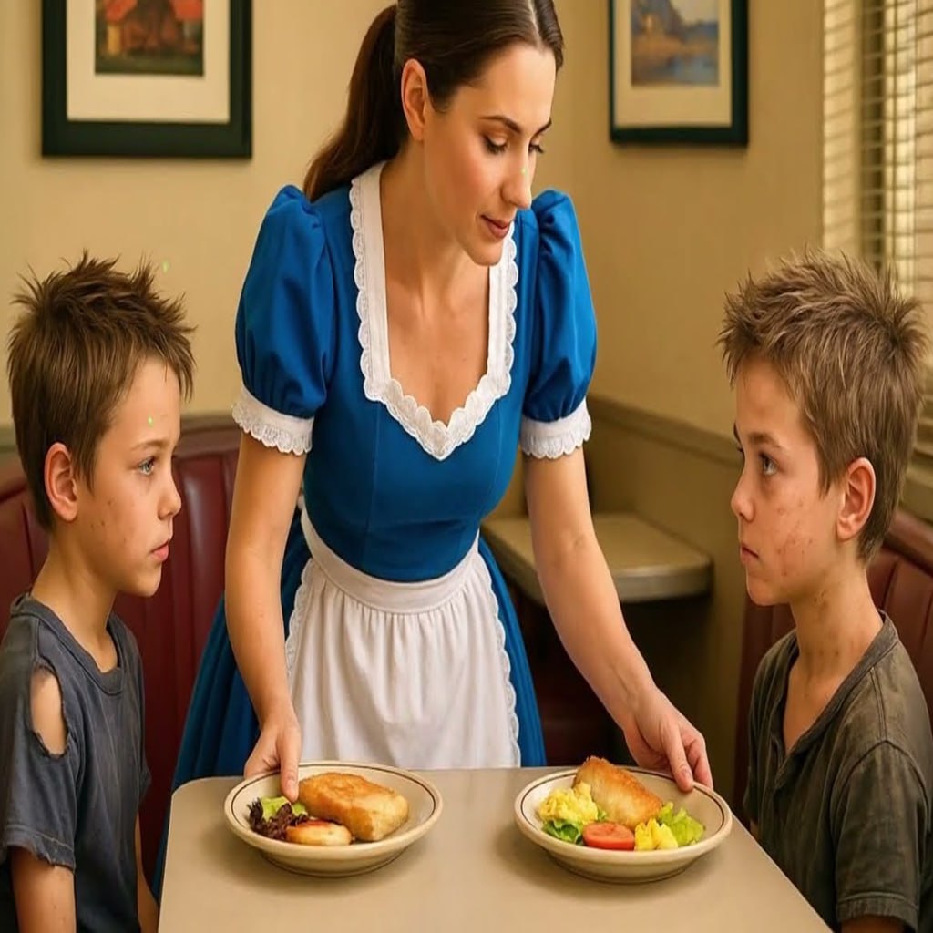 ¿Y si les doy algo rápido de comer y se van? Pregunta. Ni se te ocurra. O ellos se van o te vas tú. María toma la decisión más importante de su vida en una fracción de segundo. Ignora completamente las órdenes de don Ricardo y camina directamente hacia la puerta del restaurante. “María, ¿qué diablos estás haciendo?”, grita su jefe, pero ella ya está afuera. La lluvia la golpea inmediatamente, empapando su uniforme. Se acerca a los dos niños que la miran con una mezcla de esperanza y terror.