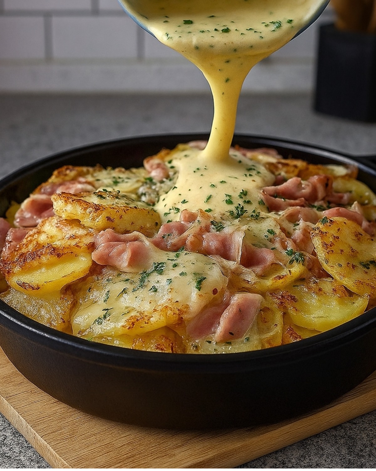 „Moja rodzina nigdy niczego nie zostawia na talerzu 😄🥔✨ To proste danie ziemniaczane z szynką jest tak pyszne, że znika ze stołu! Idealne, gdy masz ochotę na coś domowego, ciepłego i naprawdę pocieszającego 🥓💛🔥” Przepis w komentarzach. ❤️