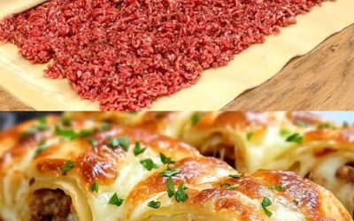 Składniki: 1 opakowanie ciasta francuskiego 500 g mielonej wołowiny lub wieprzowiny 1 cebula, drobno posiekana 2 ząbki czosnku, przeciśnięte 100…