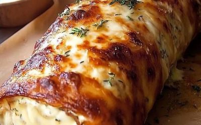 Pyszna rolada serowa z mielonym mięsem, pieczona w piekarniku przez 30 minut.