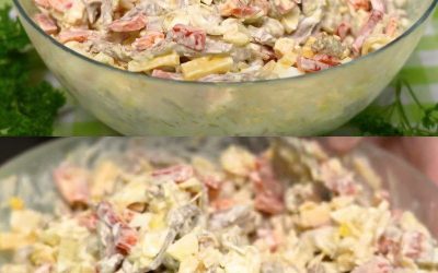 „Sałatka Syrenka” bez ziemniaków — pyszna i zdrowa sałatka 😋 ✅Składniki: Mięso — 300 g; Papryka — 2; Groszek konserwowy…