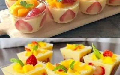 Gdy czas goni, a chcesz zaskoczyć gości lekkim i kolorowym deserem, ten mus z mango i truskawkami w szklankach to…