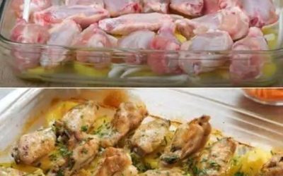 Składniki: 1 kg skrzydełek kurczaka 400 g ziemniaków 100 g cebuli Sól do smaku Oliwa z oliwek do smaku 1…