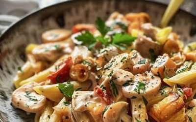 Makaron z kremowym kurczakiem i grzybami