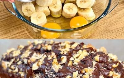 Składniki: Porcje: 8-10 kawałków 3 dojrzałe banany 2 jajka 150 g mąki pszennej 50 g kakao 100 g cukru trzcinowego …