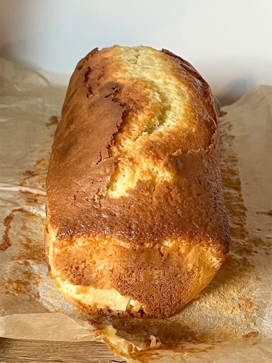 2. Keksówkę wykładamy papierem do pieczenia i przekładamy ciasto.